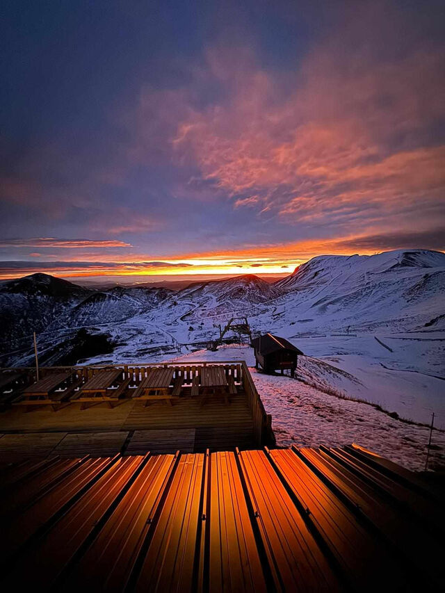 Perché à 1780m d'altitude, à quelques encablures de la majestueuse cime du Sancy, le bar-restaurant Le Sommet vous accueille dans un lieu insolite et enchanteur.