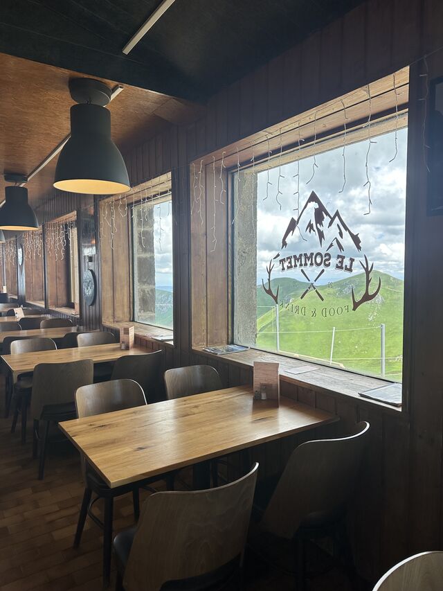 Le Sommet évolue au gré des saisons. En hiver, faites une pause, skis au pieds et rechargez vos batteries sur notre grande terrasse ensoleillé et éclairé d'un paysage immaculé de blanc. En été, détendez-vous au milieu des estives, toujours avec une vue panoramique sur le massif du Sancy couvert de verdure.